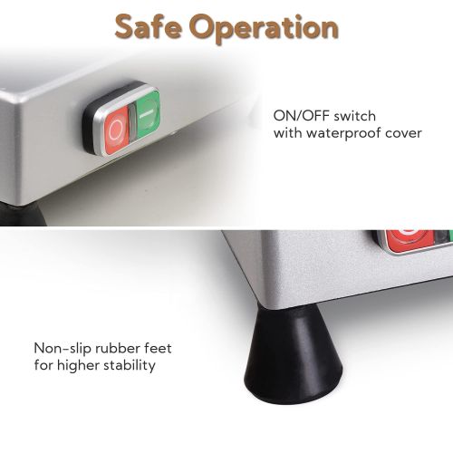 Built for precision and safety, this slicer is equipped with a powerful 1/4 HP motor, a 10-inch stainless steel blade, and a numerical dial that adjusts slicing thickness from 2mm to 12mm. It is designed to slice chilled meats at temperatures starting from 0°C (32°F).